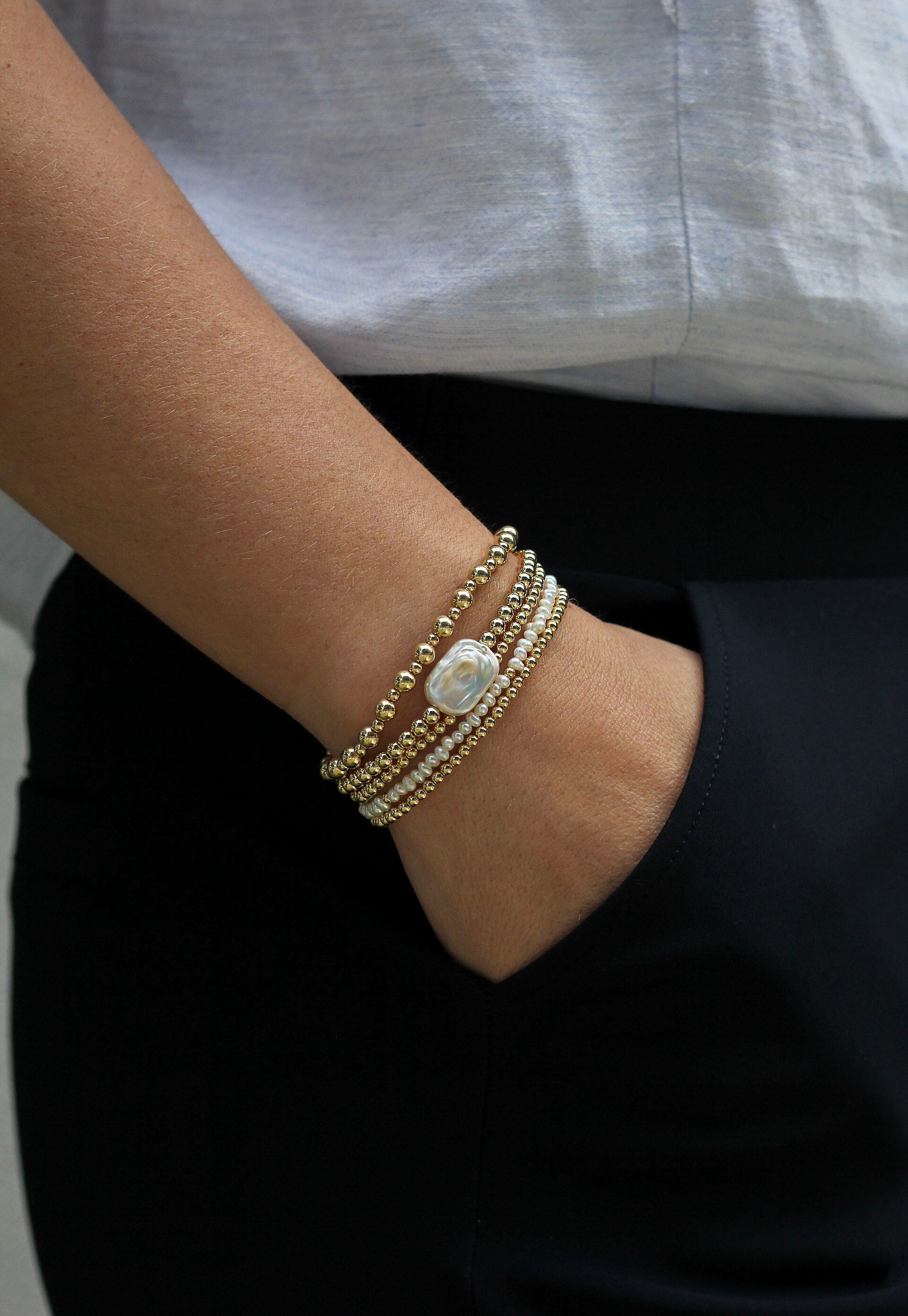 14k Gold Filled Flat Pearl Bracelet
