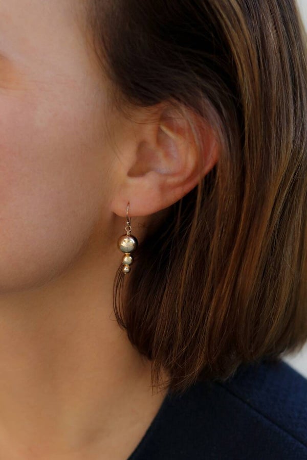 Als een fan van goud, mag dit paar oorbellen niet ontbreken in je sieradendoos. Deze prachtige 14k gold filled oorbellen zijn voorzien van drie 14k gouden balletjes van verschillende groottes. Het verfijnde ontwerp zorgt ervoor dat de oorbellen licht zijn van gewicht, waardoor ze de hele dag door zijn te dragen.