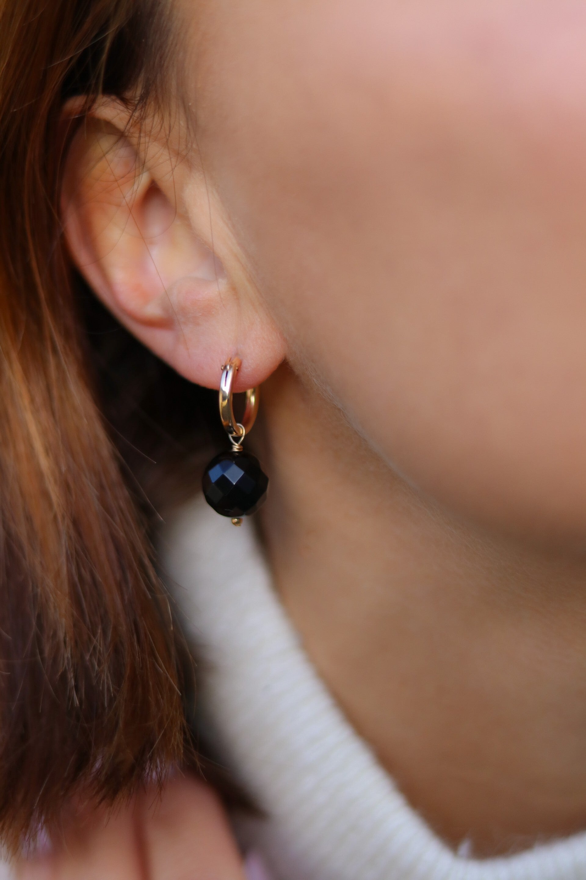 Zwart en goud is en blijft een prachtige kleurencombinatie. Deze handgemaakte oorbellen bestaande uit 14k gold filled oorbellen met een gefaceteerde Onyx steen matcht bij elke outfit. De oorbellen hebben een comfortabele pasvorm en zijn licht van gewicht, waardoor ze de hele dag zijn te dragen.