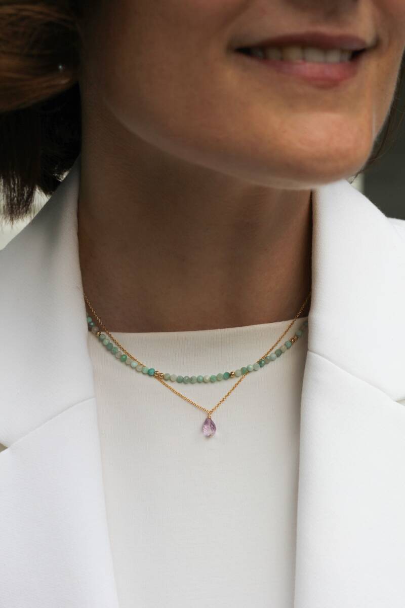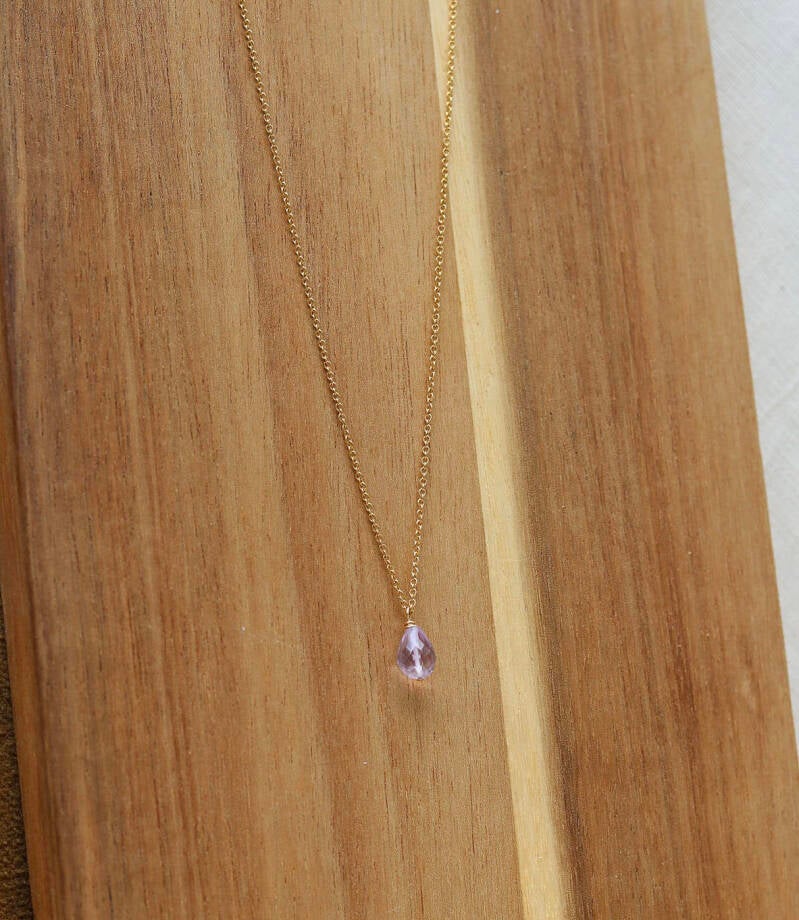 Deze gold filled ketting met een Amethist briolette is prachtig om zijn eenvoud. met een mooie kleurrijke touch van de Amethist.